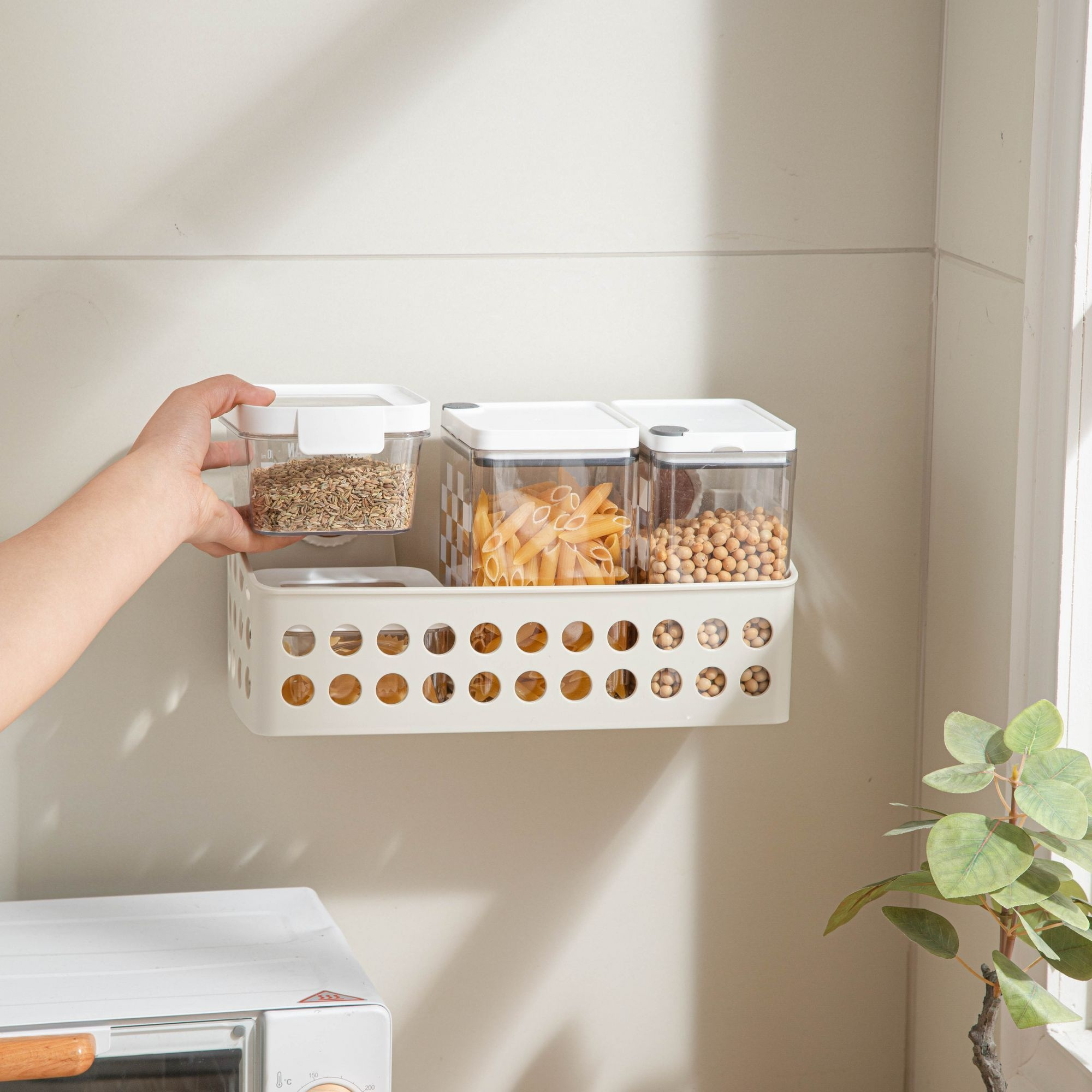 펀치프리 걸이형 수납선반 주방 활용 모습